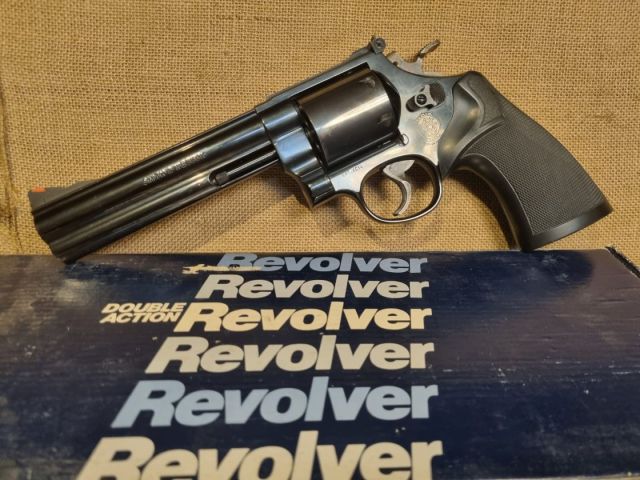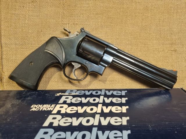 REVOLVER SPORTIVO CAL. 44 MAG, ANNI 90, CANNA 152 MM FULL LUG, TAMBURO PIENO, CANE E GRILLETTO TARGET, MIRE REGOLABILI, GUANCE GOMMA PACHMAYR. PRATICAMENTE INUSATO CON MINIMI SEGNI ROTAZIONE TAMBURO. BELLISSIMA BRUNITURA LUCIDA NERA TENDENTE AL BLU. NELLA SUA SCATOLA ORIGINALE CON DOCUMENTI ED ACCESSORI.