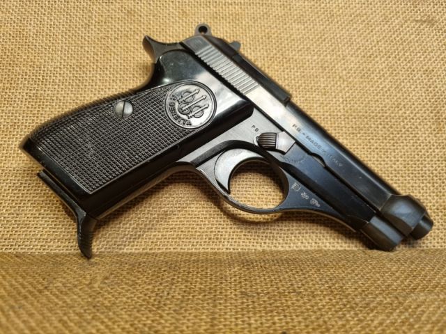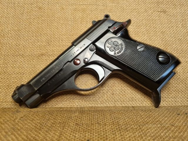 ULTERIORI INFORMAZIONI: PISTOLA CAL. 22LR, 1976, CANNA MM.90. 10RD, SOLO SA, SGANCIO CARICATORE SU IMPUGNATURA, MIRE FISSE, FUSTO IN LEGA, SEMINUOVA. CLASSIF ARMA COMUNE.