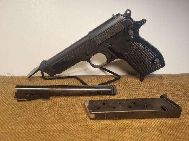 PISTOLA CAL. 7,65 PARA, 9RD, SOLO SA, MIRE FISSE. MONTA UNA CANNA TARGET FILETTATA IN VOLATA MA PRIVA DEL MIRINO - SI UTILIZZA QUELLO DEL CARRELLO- DA 145MM CHE RIPORTA LA STESSA MATRICOLA DELL'ARMA. BUONE CONDIZIONI GENERALI CON SEGNI D'USO. IN VALIGETTA CON CARICATORE SCORTA. CANNA AGGIUNTIVA STANDARD MM 113 CAL. 7,65 PARA IN DOTAZIONE. DISPONIBILE A RICHIESTA CANNA IN CAL. 9X19