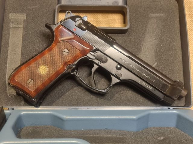 ULTERIORI INFORMAZIONI: PISTOLA CAL. 7,65 PARA, 1986, 15 RD, SA E DA CON SICURA AMBIDESTRA CON FUNZIONE ANCHE DI ABBATTICANE, CANNA PERFETTA, GUANCETTE LEGNO NOCE, PICCOLI SEGNI DI PORTO, CARICATORE SCORTA E VALIGETTA ORIGINALE.