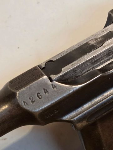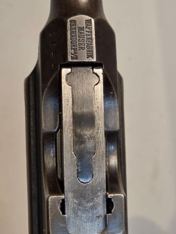 PISTOLA CAL. 7,63 MAUSER, 10 RD, MONOMATRICOLA, CANNA SUFFICIENTE, CALCIOLO COPIA, BRUNITURA ORIGINALE BUONA, GUANCETTE IN BACHELITE INTEGRE.