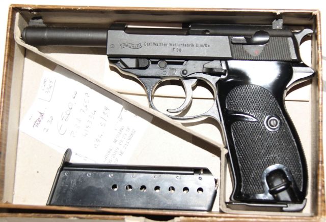 PISTOLA CAL. 7,65 PARA, COMMERCIALE, FUSTO LEGA, PARI AL NUOVO NELLA SUA SCATOLA ORIGINALE CON CARICATORE DI SCORTA E ROSATA DI PROVA.