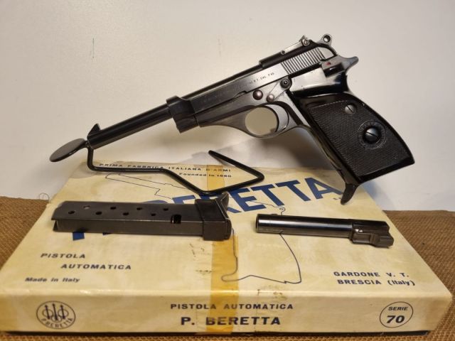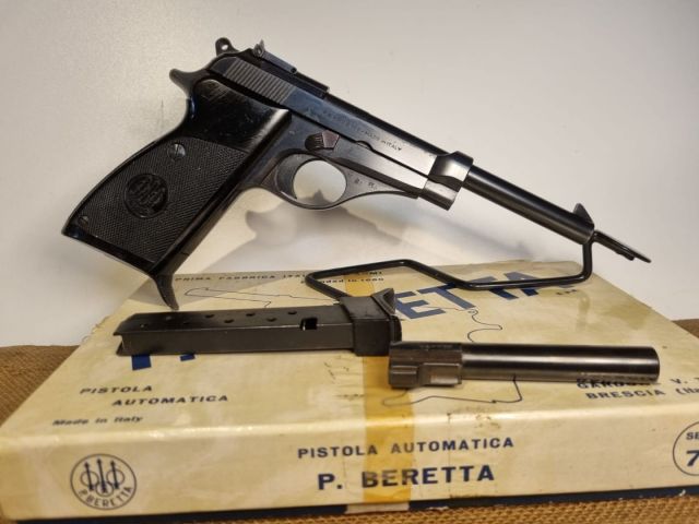 PISTOLA SPORTIVA CAL. 7,65 BR, 1979, CANNA MM.150, MIRE REGOLABILI, CON CANNA RICAMBIO MM 90 STESSA MATRICOLA, IL TUTTO IN OTTIME CONDIZIONI E MONOMATRICOLA IN SCATOLA ORIGINALE CON CARICATORE SCORTA.. MINIMI SEGNI D'USO.