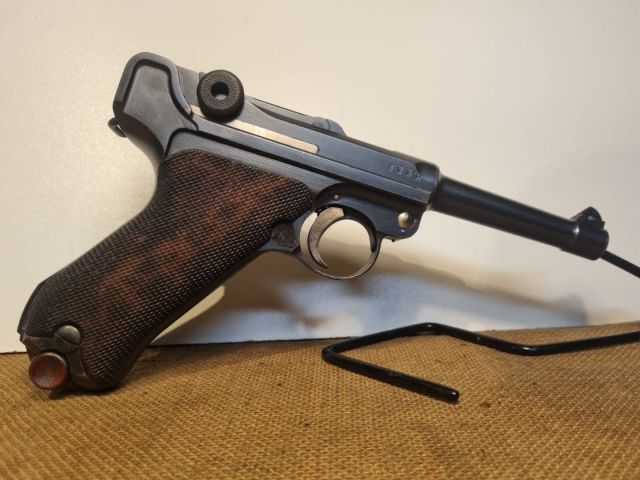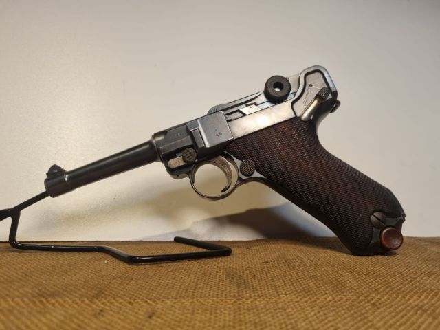 ULTERIORI INFORMAZIONI: PISTOLA SPORTIVA CAL. 9X19, 1916, MONOMATRICOLA ANCHE GUANCETTE, PUNZONI MILITARI IMPERIALI, CANNA PERFETTA, CONSERVA TUTTO IL PAGLIERINO ORIGINALE DEI PARTICOLARI E OLTRE IL 95% DELLA SUA BRUNITURA DELL'EPOCA.