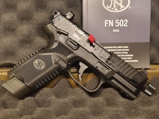 PISTOLA SPORTIVA CAL. 22LR, 16 COLPI, CANE ESTERNO, COMANDI AMBIDESTRI, CANNA FILETTATA IN VOLATA, RAIL SOTTOCANNA PER TORCIA, PREDISPOSTA MONTAGGIO PUNTO ROSSO, NUOVA IN VALIGETTA CON DOCUMENTI, ACCESSORI E CARICATORE SCORTA.