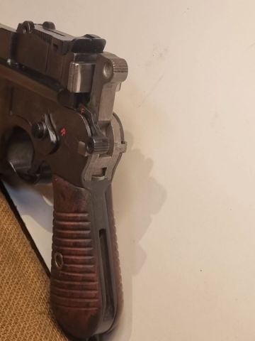 PISTOLA SPORTIVA CAL. 7,63 M, PROFESSIONALMENTE RIBRUNITA SENZA ALTERAZIONE DI SCRITTE, MARCHI E PUNZONI, CANNA OTTIMA E LUCIDA, CARICATORE SCORTA LUNGO IN DOTAZIONE, CALCIOLO CON CARTIGLIO MAUSER - POSSIBILE COPIA DATATA- , BRIGLIA IN CUOIO CON CACCIAVITE. ESTETICAMENTE PARI AL NUOVO.
