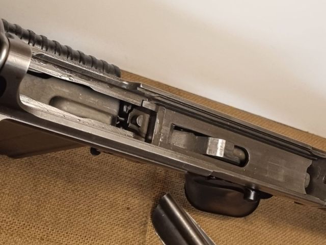 CARABINA SPORTIVA CAL. 7,62X39, DDR, 2011, COMPLETAMENTE MONOMATRICOLA, IMPUGNATURA E CALCIO NELLA CARATTERISTICA PLASTICA MARRONE, FUSTO IN ACCIAIO STAMPATO, ASTINA IN LEGNO, 10 RD, CLASSICO ROMPIFIAMMA A FETTA DI SALAME, SEMINUOVO. BAIONETTA IN DOTAZIONE.