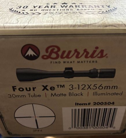 Ottica Burris 3-12x56 con attacchi in acciaio, reticolo 3P#4 illuminato.