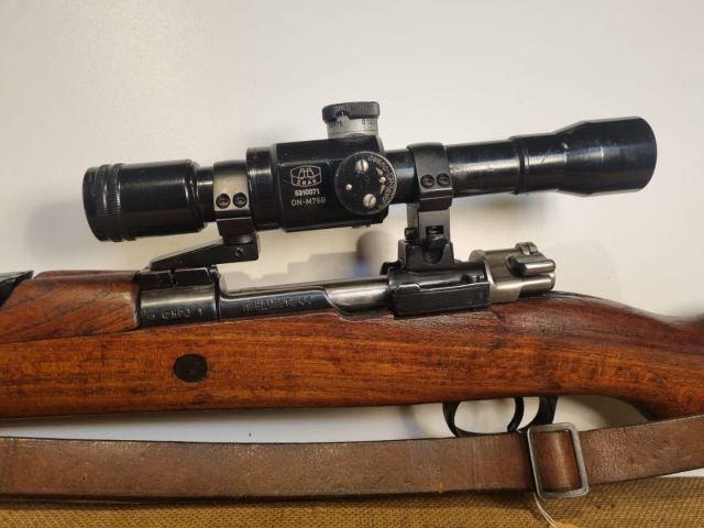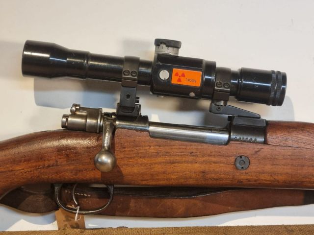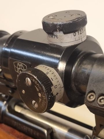 CARABINA CAL. 8X57JS, ORDINANZA YUGOSLAVA UTILIZZATA NELLA GUERRA DEI BALCANI ANNI 90, COMPLETAMENTE MONOMATRICOLA, CANNA PERFETTA DIA 7,92, MONTATA CON ATTACO PIVOT PROD SERBA E OTTICA ZRACK 4X32 CON RETICOLO MILITARE E TORRETTA BALISTICA. CINGHIA E COPRIOTTICA IN CUOIO. TRIZIO ESAURITO O RIMOSSO. SEMINUOVA.