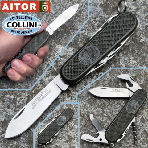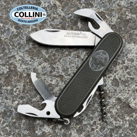 L'AITOR Pocket Knife 280.172 Gran Patrullero è un coltello multiuso vintage di alta qualità, prodotto in Spagna negli anni 80 e 90. Con un design funzionale e robusto, è ideale per collezionisti, appassionati di outdoor e per l'uso quotidiano. Questo coltello è noto per la sua durabilità e versatilità, simile ai classici coltellini svizzeri. Caratteristiche Principali Modello: 280.172 Gran Patrullero Produttore: AITOR Origine: Spagna Materiale delle Lame: Acciaio inossidabile di alta qualità Impugnatura: Materiale sintetico resistente con finitura antiscivolo Lunghezza totale: Circa 19 cm quando completamente aperto Lunghezza chiusa: Circa 11 cm Peso: Leggero e facile da trasportare Utensili Multiuso Il AITOR Gran Patrullero è dotato di diversi utensili progettati per coprire una vasta gamma di necessità: Lama principale: Ideale per tagliare e sbucciare Lama seghettata: Perfetta per tagliare corde o materiali resistenti Cavatappi: Utile per aprire bottiglie di vino Apriscatole: Essenzi