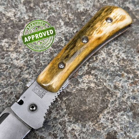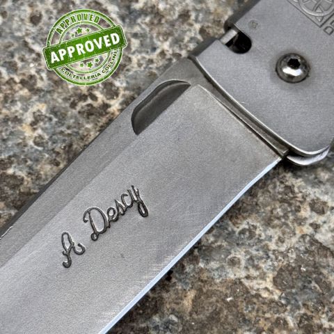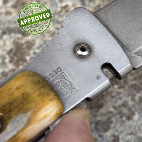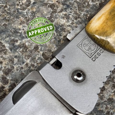 COLTELLO RITIRATO DA COLLEZIONE PRIVATA* Provenienza: Ritirato da un privato, precedentemente acquistato* Condizioni: in ottime condizioni* Reperibile in commercio: pezzo unico artigianale* Affilatura: originale* Segni su lama: piccoli segni* Segni su impugnatura: Nessuno* Scatola: /* Fodero: -* Manuali, Certificati e Garanzie: No* Controllato e Certificato dal nostro laboratorio interno Alain Descy è un rinomato artigiano belga specializzato nella realizzazione di coltelli di alta qualità, noti per la combinazione di funzionalità, estetica e artigianalità. Descy lavora materiali pregiati come l'acciaio e il legno per creare coltelli durevoli e dal design raffinato. Il modello Bonvent, qui mostrato, incarna il meglio del suo stile: una lama robusta in acciaio satinato, incisa con la firma di Descy, e un manico in osso, che conferisce eleganza e una presa ergonomica. Questo coltello pieghevole è leggero, versatile e ideale per l’uso quotidiano o per collezionisti. Un