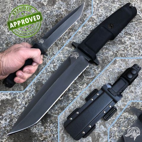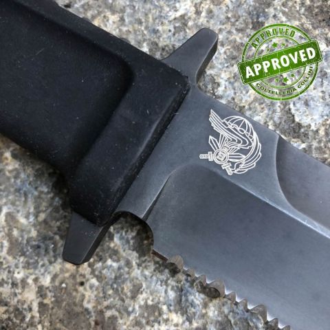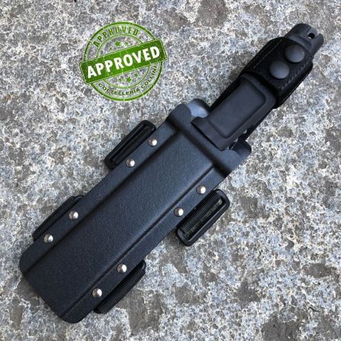 Coltello ritirato da collezione privata - Coltello Col Moschin 1° serie prodotto intorno al 2005 con fodero in kydex - Ottime condizioni, qualche piccolo segno sulla lama e sul fodero - Affilatura originale - Controllato e certificato dal nostro laboratorio interno Coltelleria Collini Destinazione d'uso: Collezione/Tattico/MilitareLama: in acciaio inox N690Co 58HRCManicatura: smontabile in KratonLunghezza lama: 160mm.Spessore della lama: 6.3mm.Lunghezza chiuso: -mm.Lunghezza totale: 290mm.Bilanciatura: arretrata, 1 cm. dal ramo di guardia inferiorePeso: 265g.Chiusura: -Clip: -Fodero: tattico in Kydex 1° serieNote: - Coltello da taglio per impieghi speciali, sviluppato espressamente per il 9° Reggimento D'assalto Paracadutisti Col Moschin, unità d'élite della brigata Folgore. Tutti i coltelli di questa serie hanno impugnature dritte in KRATON da disegno ergonomico la cui forma e dimensione favorisce oltre ad una solida presa il rapido cambio di impugn