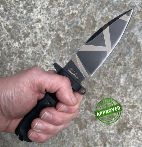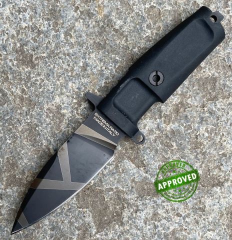 COLTELLO RITIRATO DA COLLEZIONE PRIVATA* Provenienza: Ritirato da un privato, precedentemente acquistato - SERIALE CK0269D* Condizioni: piuttosto buone, il coltello è stato usato per tagli medio/leggeri* Reperibile in commercio: Fuori produzione* Affilatura: Di fabbrica* Segni su lama: vari dovuti all'uso (vedere le foto relative), si tratta soprattutto di sfregamenti/lievi lucidature* Segni su impugnatura: lievi* Scatola: Presente, un lato si era danneggiato ed è stato sistemato con del nastro adesivo* Fodero: originale* Manuali, Certificati e Garanzie: -* Controllato e Certificato dal nostro laboratorio interno Destinazione d'uso: Tattico/Sportivo Tipo di produzione: IndustrialePaese di produzione: ItaliaLama: in acciaio inox N690CoFinitura: Geo Camo (brunitura con trattamento laser)Impugnatura: ForpreneLunghezza lama: 110mm.Spessore lama: 6.3mm.Lunghezza totale: 210mm.Bilanciatura: arretrataPeso: 212g.Fodero: in ABS con aggancio Tek-Lok con sistema automatico di ritenzione del