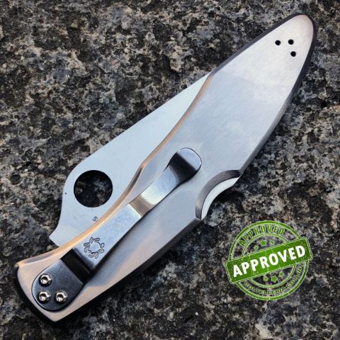Coltello ritirato da una collezione privata - Ottime condizioni, piccoli segni sulla guancia - Scatola originale - Mai riaffilato - Controllato e certificato dal nostro laboratorio di Coltelleria Collini interno. Destinazione d'uso: Sportivo Tipo di produzione: IndustrialeProduzione Lama: JapanLama: In acciaio inox VG-10Trattamento Lama: -Manicatura: acciaioLunghezza lama: 100mm.Spessore lama: 3mm.Lunghezza chiuso: 135mm.Lunghezza totale: 235mm.Spessore da chiuso: 8mmBilanciatura: -Peso: 158g.Chiusura: Back LockClip: in acciaio inoxFodero: -Confezione: scatola in cartone con loghi SpydercoNote: