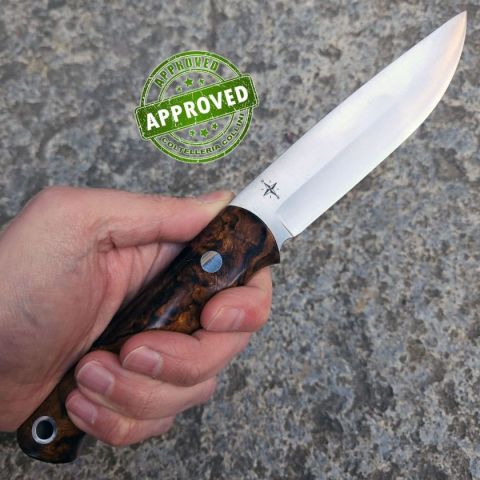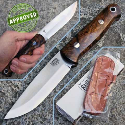 COLTELLO PRECEDENTEMENTE ACQUISTATO, RITIRATO DA COLLEZIONE PRIVATA* Tipologia: coltello precedentemente acquistato, proveniente da una collezione privata* Condizioni: Pari al nuovo, mai utilizzato, mai estratto dalla confezione e mai inserito nel fodero* Reperibile in commercio: Di difficile reperibilità con questa particolare impugnatura in radica* Affilatura: Di fabbrica* Segni su lama: Nessuno* Segni su impugnatura: Nessuno* Scatola: Presente* Fodero: Presente, nuovo, mai tolto dalla confezione plastica ancora sigillata* Manuali, Certificati e Garanzie: Presenti* Controllato e Certificato dal nostro laboratorio interno Il Bark River Bushcrafter II è progettato per essere il coltello da bushcraft definitivo. Il nome stesso non è casuale: un'accurata ricerca ha portato a un risultato eccezionale, apprezzato dagli appassionati del settore. La lama ha una forma ideale per le attività di bushcraft, mentre il manico offre un'ergonomia eccellente. Rispetto al modello standard, il Bushcraf