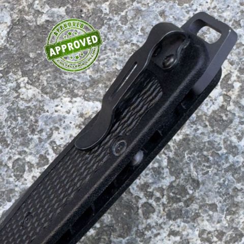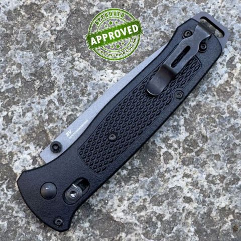 COLTELLO RITIRATO DA COLLEZIONE PRIVATA* Provenienza: Ritirato da un privato, precedentemente acquistato* Condizioni: Globalmente in ottime condizioni* Reperibile in commercio: Fuori produzione* Affilatura: Di fabbrica* Segni su lama: Nessuno* Segni su impugnatura: Nessuno* Scatola: Presente* Fodero: -* Manuali, Certificati e Garanzie: Presenti* Controllato e Certificato dal nostro laboratorio interno Destinazione d'uso: Tattico / EDCTipo di produzione: IndustrialePaese di produzione: USALama: in acciaio CPM-3VFinitura lama: Gray CoatedImpugnatura: GrivoryLunghezza lama: 86mm.Spessore lama: 2.3mm.Lunghezza chiuso: 119mm.Lunghezza totale: 205mm.Spessore da chiuso: 10.4mmPeso: 58.4g.Sistema di chiusura: AxisLockClip: Amovibile e reversibile, in acciaio inoxConfezione: Scatola di cartone con loghi BenchmadeNote: coltello precedentemente acquistato, proveniente da una collezione privata