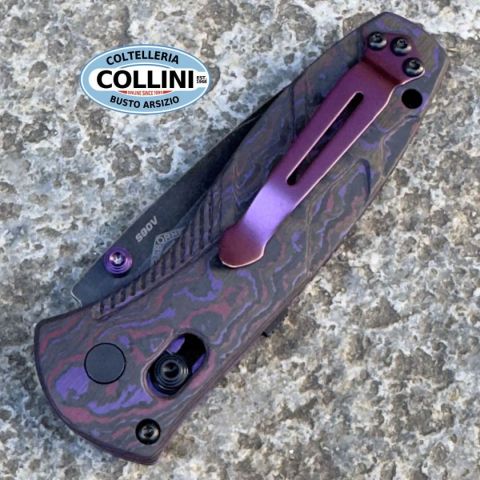 Quando il sole artico scende oltre l’orizzonte, un’incantevole foschia viola si diffonde nel cielo, creando uno spettacolo fugace che ha ispirato la creazione del Gold Class 585BK-251 Mini Barrage, un capolavoro esclusivo per i collezionisti più esigenti di coltelli EDC. Questo straordinario pezzo unisce funzionalità all'avanguardia e design senza pari. Il manico è realizzato con l'elegante Fatcarbon in colorazione Purple Haze, abbinato a componenti rivestiti in Abyss PVD per una finitura unica e resistente. La lama in acciaio CPM-S90V, rifinita con un’esclusiva finitura nera DLC Battlewash, offre un design a drop point affilato e versatile, garantendo prestazioni eccezionali e stile inconfondibile. Grazie alla tecnologia AXIS assist di Benchmade, il coltello si apre con rapidità e precisione, assicurando affidabilità in ogni situazione. Un’opera rara e affascinante, tanto quanto il fenomeno naturale che l’ha ispirata, il Gold Class 585BK-251 Mini Barrage è limitato a sole 3.500 unità