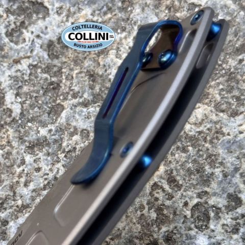 Progettato con lo stesso telaio in titanio ultra-sottile e mega-resistente della sua controparte full-size, il 743 Mini Narrows™ offre possibilità di porto minimalista ai massimi livelli. Dotato di chiusura Torsion Spring AXIS® di Benchmade, di una lama in acciaio inossidabile CPM-20CV da meno di otto centimetri con un'eccellente ritenzione del filo e una resistenza superiore alla corrosione, di impugnature rigide in titanio per mani piccole, tasche segrete o per pura preferenza personale; condiscono il tutto le raffinate finiture in PVD Sapphire Blue, il Mini Narrows™ rappresenta l'apice degli EDC ultraleggeri e compatti di qualità. Destinazione d'uso: Sportivo / EDCTipo di produzione: IndustrialePaese di produzione: USALama: in acciaio inox CPM-20CV 59/61HRCTrattamento lama: Satinatura e StonewashedManicatura: Titanio 6Al-4VLunghezza lama: 75mm.Spessore lama: 2.03mm.Lunghezza chiuso: 100mm.Lunghezza totale: 176mm.Spessore da chiuso: 7.1mmPeso: 56g.Chiusura: Torsion Sprin