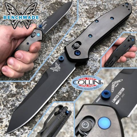Destinazione d'uso: Tattico/Collezione Tipo di produzione: IndustrialePaese di produzione: USALama: Reverse Tanto in acciaio CPM-S90V (59-61 HRC)Finitura lama: DLCManicatura: DLC TitaniumLunghezza lama: 86mm.Spessore lama: 3mm.Lunghezza chiuso: 113mm.Lunghezza totale: 200mm.Spessore da chiuso: 10.4mmPeso: 95g.Chiusura: AXIS LockClip: Amovibile e reversibile, in acciaio inoxConfezione: Scatola di cartone con loghi BenchmadeNote: design by Osborne - Limited Edition 2000 pezzi