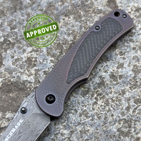 COLTELLO PRECEDENTEMENTE ACQUISTATO, RITIRATO DA COLLEZIONE PRIVATA* Tipologia: coltello precedentemente acquistato, proveniente da una collezione privata* Condizioni: pari al nuovo, mai utilizzato* Reperibile in commercio: Fuori produzione* Affilatura: Di fabbrica* Segni su lama: Nessuno* Segni su impugnatura: Nessuno* Scatola: Presente* Fodero: Sacchetto in microfibra* Manuali, Certificati e Garanzie: Presenti* Controllato e Certificato dal nostro laboratorio interno Annualmente Benchmade rilascia un modello di coltello in edizione limitata sotto la sua linea Gold Class. Questi coltelli Benchmade Gold Class sono realizzati con i materiali più pregiati e presentano la lavorazione di altissimo livello. Ogni serie di coltelli Gold Class Benchmade è limitata e numerata. Questo particolare modello Gold, il 750-101, ha lama in Damasteel con motivo Infinity, manico in titanio monolock anodizzato in bronzo con inserti in fibra di carboni