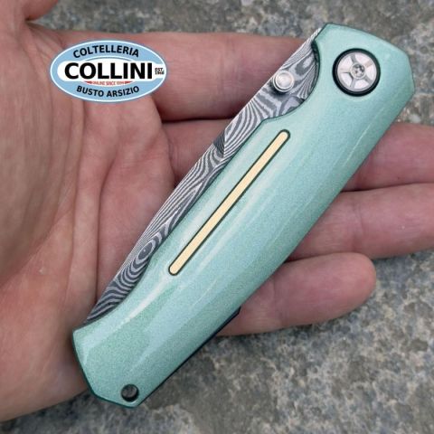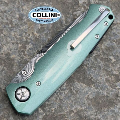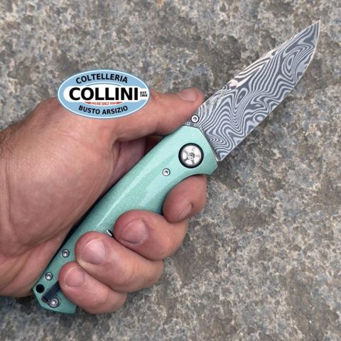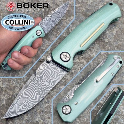 Nel corso degli anni, la Mustang è diventata l'epitome della muscle car e ora continua la sua eredità nella settima generazione. Boker cita il design inconfondibile del veicolo e rende la leggenda ancora più tangibile nell'omonima Mach-1 del 1969. Parti del mozzo della ruota, del quadrilatero e delle sospensioni sono state utilizzate per la pregiata lama in Damasco a 84 strati, forgiata a mano da Chad Nichols secondo il modello Wavepool. La lama su cuscinetti a sfera, con il suo caratteristico ricasso, si apre dolcemente grazie al perno rimovibile per il pollice, e taglia con sicurezza grazie al potente design dell'impugnatura disegnata da Tommaso Rumici. Gli incavi per le dita nell'impugnatura in alluminio leggero e ad alta resistenza ricordano i parafanghi della muscle car, mentre l'intarsio color oro della guancetta anteriore dell'impugnatura riprende le finiture laterali della portiera e della carrozzeria. La colorazione Silver Jade dell'impugnatura sottolinea in modo espressivo l'