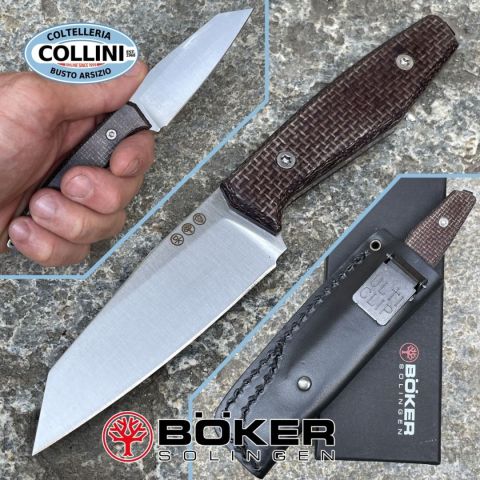 Destinazione d'uso: UtilityTipo di produzione: IndustrialePaese di produzione: Germania - SolingenLama: ful tang in acciaio inox RWL-34 61/62HRCFinitura lama: SatinManicatura: MicartaLunghezza lama: 79mm.Spessore lama: 2.4mm.Lunghezza totale: 174mm.Peso: 63g.Fodero: in cuoio, con attacco UltiClipConfezione: scatola di cartone con loghi BokerNote: Design by Alex Kremer