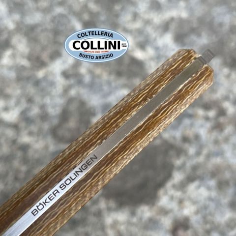 Destinazione d'uso: UtilityTipo di produzione: IndustrialePaese di produzione: Germania - SolingenLama: ful tang in acciaio inox RWL-34 61/62HRCFinitura lama: SatinManicatura: MicartaLunghezza lama: 79mm.Spessore lama: 2.4mm.Lunghezza totale: 174mm.Peso: 63g.Fodero: in cuoio, con attacco UltiClipConfezione: scatola di cartone con loghi BokerNote: Design by Alex Kremer