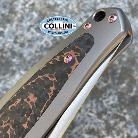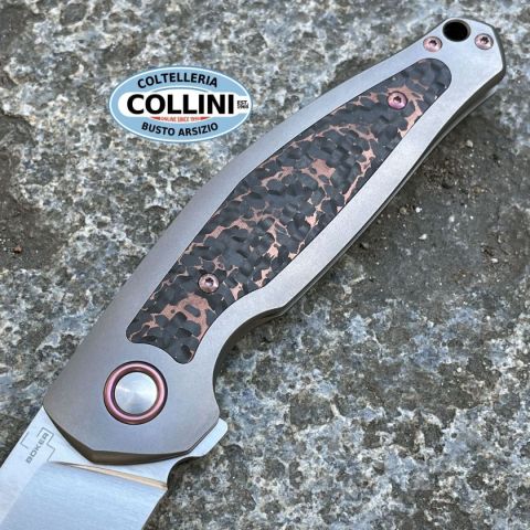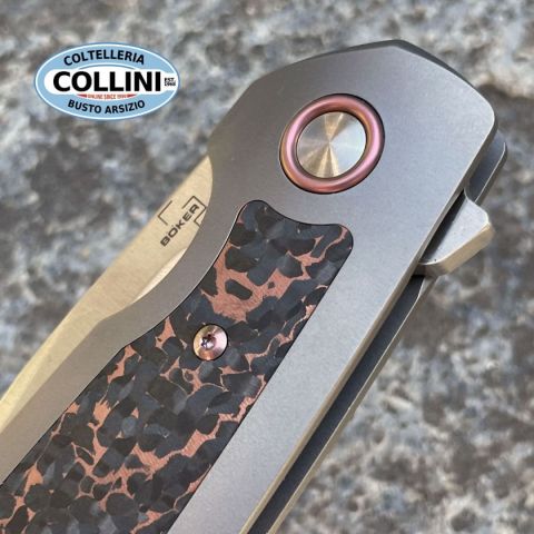 Destinazione d'uso: Sportivo/collezioneTipo di produzione: IndustrialePaese di produzione: ItaliaLama: in acciaio inox M390 61HRCTrattamento lama: satinaturaManicatura: in titanio e fibra di carbonio con inserti di rameLunghezza lama: 88mm.Spessore lama: 4mm.Lunghezza totale: 212mm.Peso: 142g.Clip: in titanio, ricavata dal pienoChiusura: frame lockConfezione: scatola di cartone con loghi Boker Plus, astuccio con zip, certificato di garanziaNote: Design by Jens Anso - Edizione Limitata in soli 500 esemplari numerati su lama, scatola e certificato