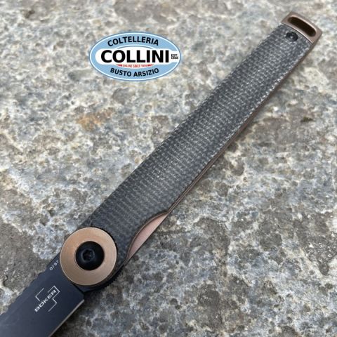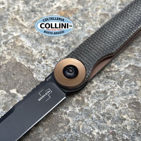 Destinazione d'uso: EDC / SportivoTipo di produzione: IndustrialePaese di produzione: TaiwanLama: in acciaio D2Trattamento lama: black coatingManicatura: micartaLunghezza lama: 76mm.Spessore lama: 1.9mm.Lunghezza totale: 180mm.Peso: 44g.Clip: in acciaio inox, amovibileChiusura: liner lockConfezione: scatola di cartone con loghi Boker Plus, astuccio in nylon con zipNote: apertura tramite sistema "Minimalist Flipper" su cuscinetti a sfera