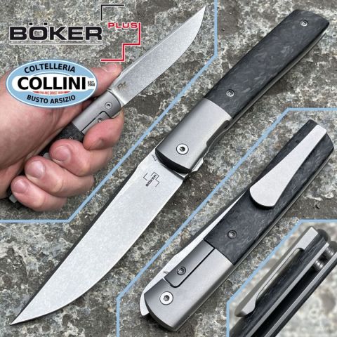 Destinazione d'uso: Sportivo / CollezioneTipo di produzione: IndustrialePaese di produzione: TaiwanLama: in acciaio inox M390Trattamento lama: stonewashedManicatura: in titanio e fibra di carbonioLunghezza lama: 90mm.Spessore lama: 2.6mm.Lunghezza totale: 196mm.Peso: 100g.Clip: in titanio, ricavata dal pienoChiusura: FramelockConfezione: scatola di cartone con loghi Boker PlusNote: Design by Brad Zinker - Sistema di apertura su cuscinetti a sfera