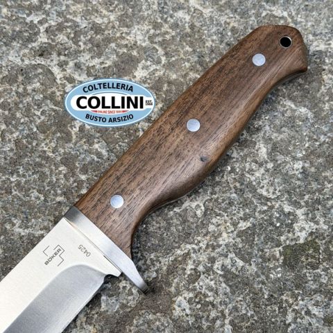 Coltello da caccia, da outdoor o fisso per l’uso quotidiano? Il Böker Plus Walnut Drop non si lascia incasellare in una sola categoria: conquista allo stesso modo appassionati di bushcraft, cacciatori e utenti che cercano un coltello di qualità a un prezzo interessante. Dotato di una versatile lama drop-point in 14C28N, il Walnut Drop affronta con facilità un’ampia gamma di lavori di taglio, dall’apertura dei pacchi alle più impegnative operazioni venatorie. Il manico ergonomico in noce offre una presa calda e sicura, mentre la costruzione full-tang e la guardia integrata garantiscono stabilità e sicurezza durante l’uso. Dettagli raffinati ne valorizzano l’estetica, come i tre perni decorativi sul manico e il caratteristico ricasso ornamentale sul dorso della lama. Il rivetto cavo all’estremità del manico funge anche da foro per laccetto, ampliando le possibilità di trasporto e fissaggio. Fornito con un fodero in pelle di alta qualità, il Walnut Drop unisce materiali tradizionali