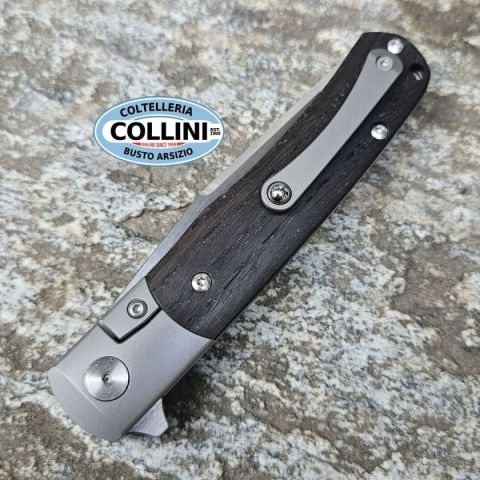 Discreto nel nome – sovrano nell’aspetto. Il Boker TRPPR (pronunciato trapper) è un coltello da gentleman d’eccezione che trasporta lo spirito del celebre Boker Trapper in una nuova era. Pur ridotto all’essenziale, questo coltello tascabile non lascia nulla al caso. La lama su cuscinetti, realizzata in acciaio sinterizzato MagnaCut (61–62 HRC), si apre con estrema fluidità tramite flipper, mentre il raffinato frame-lock integrale in titanio, con overtravel stop, garantisce una chiusura sicura e stabile. L’acciaio della lama si distingue per l’elevata resistenza all’usura, l’eccellente tenacità e l’ottima resistenza alla corrosione. Il tutto impreziosito da una elegante finitura two-tone. Il lungo bolster in titanio rievoca con eleganza lo spirito del passato, mentre le guancette in legno di quercia palustre (Bog Oak Wood) completano il design, reinterpretando con gusto la cultura del coltello contemporaneo. Dettagli decorativi come la vite dell’asse lama con l’iconico albero Boker e la