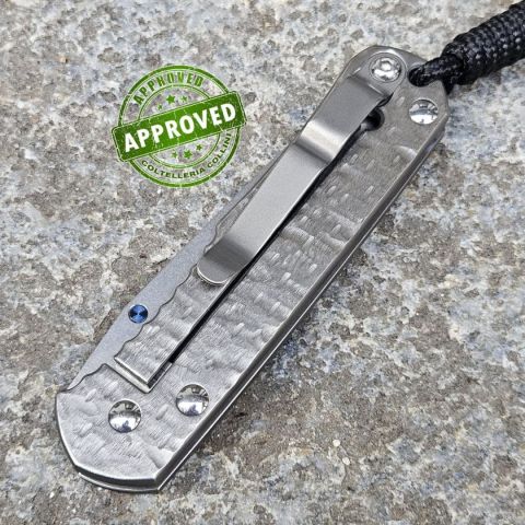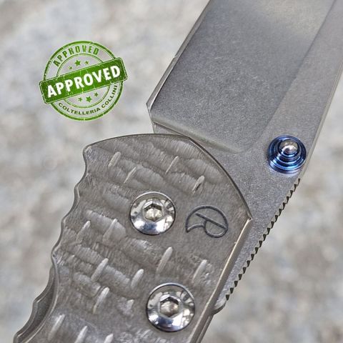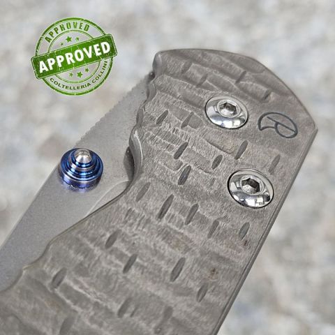 COLTELLO RITIRATO DA COLLEZIONE PRIVATA* Provenienza: Ritirato da un privato, precedentemente acquistato e lievemente utilizzato* Condizioni: Globalmente in ottime condizioni, lieve scolorimento sul perno di apertura anodizzato* Reperibile in commercio: Fuori produzione* Affilatura: Riaffilato, affilatura migliorabile* Segni su lama: Nessuno* Segni su impugnatura: Nessuno* Scatola: Presente ed originale, ma generica: priva di referenze del modello* Fodero: -* Manuali, Certificati e Garanzie: -* Controllato e Certificato dal nostro laboratorio interno Destinazione d'uso: collezione / sportivo Tipo di produzione: MidTechPaese di produzione: USALama: in acciaio inox CPM-S30VN 58/59HRCManicatura: Titanio hammered - una texture ottenuta tramite martellatura manuale che crea piccole impronte irregolari sulla superficie del manico. Il risultato è un aspetto tridimensionale, con riflessi variabili alla luce, maggiore grip e un carattere artigianale unico per ogni esemplare.Lunghezza lama: 75mm