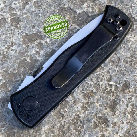 COLTELLO RITIRATO DA COLLEZIONE PRIVATA* Provenienza: Ritirato da un privato, precedentemente acquistato* Condizioni: Globalmente in ottime condizioni* Reperibile in commercio: Coltello del 2001, fuori produzione, caratterizzato da un'affilatura asimmetrica / a scalpello* Affilatura: Di fabbrica* Segni su lama: Nessuno* Segni su impugnatura: Qualche piccolo segno dovuto dal tempo* Scatola: -* Fodero: -* Manuali, Certificati e Garanzie: -* Controllato e Certificato dal nostro laboratorio interno Destinazione d'uso: Tattico/Militare Tipo di produzione: industrialeLama: in acciaio inox 154CM con affilatura asimmetrica/a scalpelloFinitura lama: Stone WashedPaese di produzione: USAManicatura: G-10 con liners in titanioLunghezza lama: 72mm.Spessore della lama: 3mm.Lunghezza chiuso: 105mm.Lunghezza totale: 180mm.Peso: 92g.Chiusura: Liner LockClip: in acciaio inox brunito, amovibileNote: coltello del 2001 fuori produzione, precedentemente acquistato, proveniente da una collezione privata