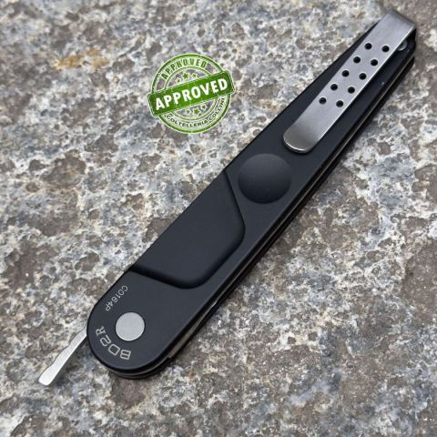 COLTELLO RITIRATO DA COLLEZIONE PRIVATA* Tipologia: Precedentemente Acquistato* Condizioni: in ottime condizioni* NON più reperibile in commercio* Affilatura: Di fabbrica* Segni su lama: Nessuno* Segni su impugnatura: Piccolissimi segni* Scatola: Presente* Fodero: -* Manuali, Certificati e Garanzie: ER* Controllato e Certificato dal nostro laboratorio interno Chiudibile medio della serie BD. E’ prodotto con l’impugnatura in alluminio che esalta le sue caratteristiche di resistenza e leggerezza, anche grazie al telaio in acciaio. Il modello mantiene tutte le caratteristiche del BD2 aggiornato con il nuovo sistema di apertura High Speed Razor Opening.. Destinazione d'uso: Sportivo / EDC Tipo di produzione: IndustrialeProduzione Lama: ItaliaLama: In acciaio inox N690Co 58HRCTrattamento lama: SatinImpugnatura: AnticorodalLunghezza lama: 95mm.Spessore lama: 3mm.Lunghezza chiuso: 128mm.Lunghezza totale: 224mm.Spessore da chiuso: 17mm.Peso: 105g.Chiusura: Liner LockClip: amovibile in acciaio
