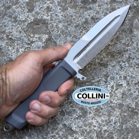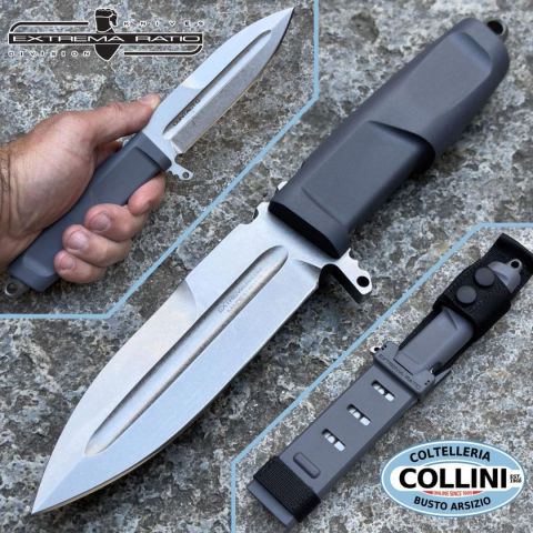 Versione compatta del CONTACT, il CONTACT C ha lama a punta di lancia, in acciaio Böhler N690 con durezza di 58 HRC, filo piano, ramo di guardia inferiore e sguscio di alleggerimento a tutta lunghezza. L’impugnatura in Forprene con blocco tramite codolo filettato rende solido e ben bilanciato il coltello. Il fodero, compatibile M.O.L.L.E., è in nylon antiurto con sistema che evita rumori di scuotimento, è dotato di patta di sicurezza a due bottoni, di cosciale con rinforzo in gomma anti-rotazione e di sistema di ritenzione di 2° livello reversibile ambidestro: la semplice pressione sul grilletto sblocca la lama. Destinazione d'uso: Tattico / Backup Tipo di produzione: Industriale Paese di produzione: Italia Lama: in acciaio inox N690Co 58HRC Trattamento lama: Stonewashed Impugnatura: Forprene Lunghezza lama: 128mm. Spessore lama: 6.3mm.Lunghezza totale: 258mm.Peso: 373g.Fodero: in Nylon Confezione: Scatola di cartone con loghi Extrema Ratio Note: -