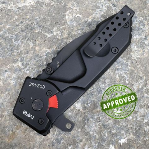 COLTELLO RITIRATO DA COLLEZIONE PRIVATA* Tipologia: Precedentemente Acquistato* Condizioni: Globalmente in buone condizioni* Reperibile in commercio Reperibile* Affilatura: Di fabbrica* Segni su lama: Un paio di leggeri segni sulla brunitura* Segni su impugnatura: Leggeri segni di usura sulla viteria e sulla clip* Scatola: Presente, ma non in perfette condizioni* Fodero: -* Manuali, Certificati e Garanzie: Presenti* Controllato e Certificato dal nostro laboratorio interno Destinazione d'uso: Tattico/SportivoTipo di produzione: IndustrialePaese di produzione: ItaliaLama: In acciaio inox N690Co 58HRCFinitura lama: Brunitura MIL-C-13924Impugnatura: Anticorodal (alluminio)Lunghezza lama: 68mm.Spessore lama: 4mm.Lunghezza chiuso: 110mm.Lunghezza totale: 181mm.Spessore da chiuso: 15mm.Peso: 139g.Chiusura: Liner Lock, con fermo di sicurezza aggiuntivoClip: in acciaio inox amovibile e reversibileConfezione: scatola in cartone con loghi Extrema Ratio