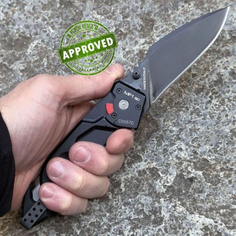 COLTELLO RITIRATO DA COLLEZIONE PRIVATA* Tipologia: Precedentemente acquistato, proveniente da una collezione privata* Condizioni: in buone condizioni* Reperibile in commercio: fuori produzione e non più reperibile* Affilatura: Di fabbrica, migliorabile* Segni su lama: Piccoli segni vicino al filo, dovuti dal tempo e dall'uso* Segni su impugnatura: Piccoli segni dovuti dal tempo e dall'uso - La viteria e la clip presentano scolorimenti* Scatola: Assente* Manuali, Certificati e Garanzie: Assenti* Controllato e Certificato dal nostro laboratorio interno MF sta per Medium Folder. Questa linea di coltelli si inserisce tra la serie Basic Folders e la serie Heavy Folders. Il meccanismo tipico della serie è il LINER-LOCK. La struttura complessiva è robusta. Tutti i coltelli della serie MF hanno un frangivetro posteriore. Inoltre presentano l’innovazione della controvite di regolazione al pernio di fissaggio della lama. Asportando la controvite è possibile stringere o allentare a piacim