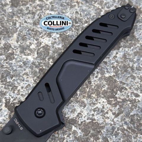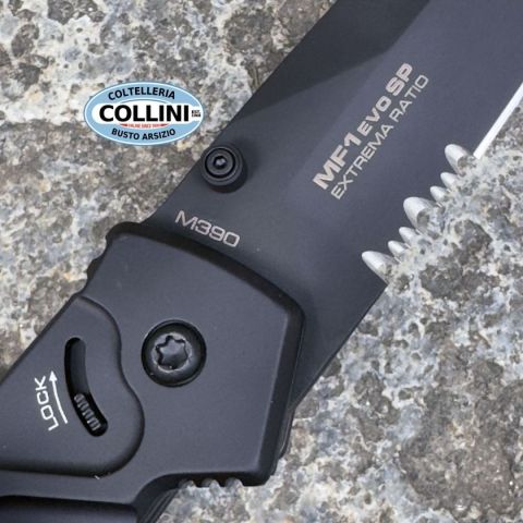MF1 EVO SP BLACK M390 è una delle versioni più performanti della serie MF1 EVO di Extrema Ratio, pensata per offrire massima resistenza, precisione e affidabilità. Questo coltello chiudibile si distingue per la sua lama Spear Point in acciaio Böhler M390, temprata a 61 HRC e rifinita con brunitura MIL-C-13924, garantendo eccellente capacità di penetrazione, elevata tenuta del filo e resistenza all’usura. L’impugnatura, in alluminio anticorodal anodizzato, è realizzata con un trattamento di ossidazione dura che la rende estremamente resistente all'usura e agli agenti esterni. Due telai in acciaio aumentano ulteriormente la robustezza della struttura, mentre il frangivetro posteriore in metallo duro aggiunge una funzionalità essenziale per scenari di emergenza. Per garantire sicurezza e stabilità, MF1 EVO SP BLACK M390 è dotato di un meccanismo di chiusura Liner Lock, affiancato dal sistema brevettato Hidden Lock, che aggiunge un blocco extra della lama. Inoltre, la clip in acciaio rever