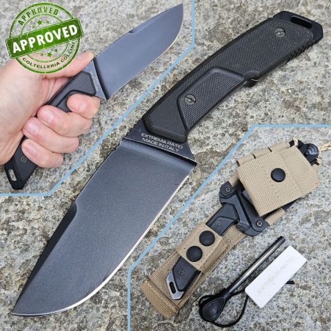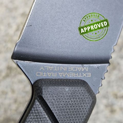 COLTELLO RITIRATO DA COLLEZIONE PRIVATA* Provenienza: Ritirato da un privato, precedentemente acquistato ed utilizzato* Condizioni: Globalmente in ottime condizioni, presenta lievi segni di usura superficiali dati dall'utilizzo che non ne compromettono in nessun modo la fruizione. Anche la pietra per affilatura e l'acciarino inclusi sono stati utilizzati, con minimi segni di abrasione estetica.* Reperibile in commercio: Reperibile in commercio* Affilatura: DI fabbrica, con piccole riprese "da campo" con la pietra ceramica inclusa* Segni su lama: lievi segi di usura superficiali dati dall'utilizzo* Segni su impugnatura: Nessuno* Scatola: Presente* Fodero: Presente* Manuali, Certificati e Garanzie: Presenti* Controllato e Certificato dal nostro laboratorio interno L' "Extrema Ratio Sethlans" è un coltello da lavoro a lama fissa nato per affrontare una vasta gamma di situazioni, adatto per il survival, bushcraft, prepping, ma anche come lama di backup. Il Sethlans è disponibile in