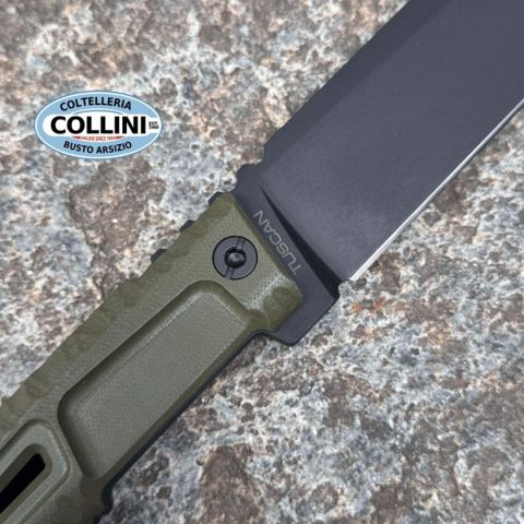 Tuscan è un omaggio verso la nostra regione, la Toscana. Questa terra è caratterizzata da paesaggi mozzafiato, colline, montagne, città d’arte, borghi, fiumi e dal Mar Tirreno che ne bagna le coste. La Toscana ospita inoltre tre delle sei forze speciali militari italiane, confermando l’importanza strategica e la rilevanza di questo territorio a livello nazionale e internazionale.Tuscan è un multiruolo che si trova completamente a suo agio in qualsiasi tipo di ambiente. Nei teatri tattici militari e contractor questo coltello si distingue per la sua versatilità a operare in vari contesti, dalle operazioni di sorveglianza e pattugliamento agli scenari di combattimento. La sua capacità di adattamento lo rende inoltre ideale per essere impiegato in zone urbane dove è necessario muoversi rapidamente e con agilità. Allo stesso tempo Tuscan si presta perfettamente all’utilizzo in ambienti outdoor, survival e bushcraft.Tuscan è estremamente maneggevole, caratterizzato da una lama full tang in