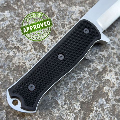 COLTELLO RITIRATO DA COLLEZIONE PRIVATA* Provenienza: Ritirato da un privato, precedentemente acquistato* Condizioni: Globalmente in ottime condizioni* Reperibile in commercio: Reperibile in commercio* Affilatura: Riaffilato professionalmente* Segni su lama: Qualche piccolo segno di usura* Segni su impugnatura: Nessuno* Scatola: -* Fodero: -* Manuali, Certificati e Garanzie: -* Controllato e Certificato dal nostro laboratorio interno Destinazione d'uso: Escursionismo / Heavy Duty Tipo di produzione: industrialePaese di produzione: GiapponeLama: full tang, in acciaio inox laminato CoS a 60HRCTrattamento Lama: satinaturaManicatura: ThermorunLunghezza lama: 160mm.Spessore della lama: 7mm.Lunghezza totale: 280mm.Bilanciatura: avanzata a 0.5cm. dal ramo di guardia inferiorePeso: 400g.Fodero: in ABS con sistema di sicurezzaNote: coltello precedentemente acquistato, proveniente da collezione privata