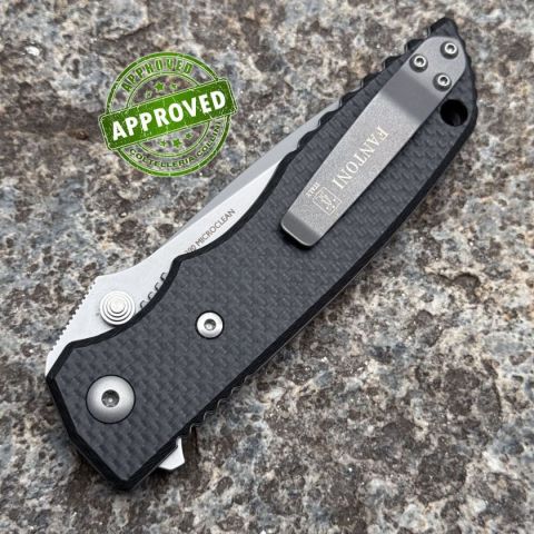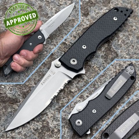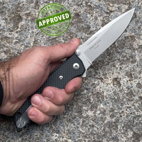 COLTELLO RITIRATO DA COLLEZIONE PRIVATA* Provenienza: Ritirato da un privato, precedentemente acquistato* Condizioni: Pari al nuovo* Reperibile in commercio: Fuori produzione* Affilatura: Di fabbrica* Segni su lama: Nessuno* Segni su impugnatura: Nessuno* Scatola: Presente* Fodero: -* Manuali, Certificati e Garanzie: Presenti* Controllato e Certificato dal nostro laboratorio interno Destinazione d'uso: Tattico/SportivoTipo di produzione: IndustrialePaese di produzione: ItaliaLama: In acciaio inox M390 61/62HRCTrattamento Lama: Stone WashedManicatura: Titanio e Fibra di CarbonioLunghezza lama: 107mm.Spessore lama: 4mm.Lunghezza chiuso: 130mm.Lunghezza totale: 240mm.Spessore da chiuso: 17mm.Peso: 170g.Chiusura: Liner LockClip: Amovibile, in titanioConfezione: scatola in cartoneNote: Apertura con sistema Carson Flipper - Design by William W. Harsey