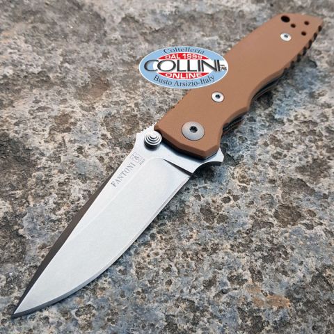 Destinazione d'uso: Tattico/SportivoTipo di produzione: IndustrialePaese di produzione: ItaliaLama: In acciaio inox M390 61/62HRCTrattamento lama: Stone WashedManicatura: cartelle in titanio e guancette in G-10Lunghezza lama: 94mm.Spessore lama: 4mm.Lunghezza chiuso: 116mm.Lunghezza totale: 206mm.Spessore da chiuso: 15mm.Peso: 132g.Chiusura: Liner LockClip: Amovibile, in titanioConfezione: scatola in cartone con loghi FantoniNote: Apertura tramite sistema Carson Flipper - Design by William W. Harsey