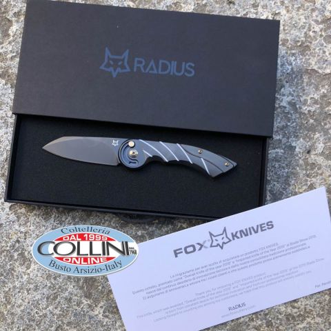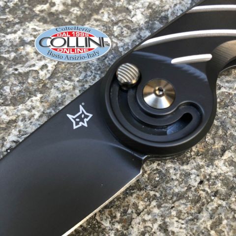 Destinazione d'uso: Sportivo / Collezione Tipo di produzione: IndustrialePaese di produzione: ItaliaLama: in acciaio inox M390 58/60HRCTrattamento lama: Black PVDManicatura: Titanio con trattamento Black PVDLunghezza lama: 75mm.Spessore lama: 4mm.Lunghezza chiuso: 110mm.Lunghezza totale: 185mm.Peso: 140g.Chiusura: Fingers Safe Opening SystemClip: Titanio ricavato dal pienoConfezione: scatola con loghi Fox Knives, fodero in cuoioNote: Design by Denis Simonucci - Vincitore del Blade Show 2019 di Atlanta come "Coltello dell'anno" e "Coltello importato dell'anno"