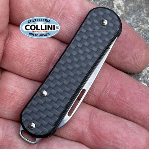 La nuova serie Vulpis di Fox Knives vuole farvi innamorare della tecnologia e dell’innovazione produttiva Made in Maniago con il nuovo multiuso piccolo e versatile. Destinazione d'uso: EDC Tipo di produzione: IndustrialePaese di produzione: ItaliaLama: in acciaio inox M390 59/60HRCFinitura lama: StonewashedManicatura: Fibra di CarbonioLunghezza lama: 44mm.Spessore lama: 2mm.Lunghezza chiuso: 63m.Lunghezza totale: 106mm.Spessore da chiuso: 6mm.Peso: 17g.Chiusura: SlipJoint (senza blocco lama)Clip: -Fodero: -Confezione: Scatola di cartone con loghi Vulpis / Fox Knives