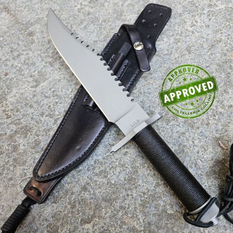 COLTELLO RITIRATO DA COLLEZIONE PRIVATA* Provenienza: Iconico coltello realizzato artigianalmente nel 2021, ritirato da un privato, precedentemente acquistato* Condizioni: in ottime condizioni, inutilizzato e unicamente tenuto in collezione* Reperibile in commercio: Attualmente fuori catalogo e non ordinabile / reperibile dall'artigiano* Affilatura: Di fabbrica* Segni su lama: Nessuno* Segni su impugnatura: Nessuno* Scatola: -* Fodero: in ottime condizioni, con firma e data di produzione* Manuali, Certificati e Garanzie: Certificato di garanzia e di autenticità con data e dati tecnici del modello* Controllato e Certificato dal nostro laboratorio interno LA LEGGENDA Jimmy Lile (1933–1991), noto come “The Arkansas Knifesmith”, è stato uno dei più importanti coltellinai americani del XX secolo. Nato a Russellville, Arkansas, realizzò il suo primo coltello a 11 anni e si dedicò professionalmente alla coltelleria dal 1971. È celebre per i leggendari coltelli di Rambo, disegnati per u
