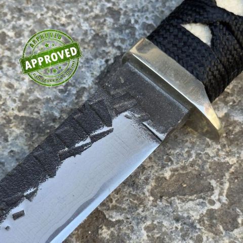 Kanetsune Shinobi KB-209 – coltello giapponese a lama fissa in Damasco Blue Steel con impugnatura Samegawa e fodero in legno COLTELLO RITIRATO DA COLLEZIONE PRIVATA* Provenienza: Ritirato da un privato, precedentemente acquistato* Condizioni: Pari al nuovo, mai utilizzato* Reperibile in commercio: difficilmente reperibile* Affilatura: Di fabbrica* Segni su lama: Nessuno* Segni su impugnatura: Nessuno* Scatola: Originale* Fodero: Presente* Manuali, Certificati e Garanzie: Presente* Controllato e Certificato dal nostro laboratorio interno C’è un fascino particolare negli oggetti nati dove l’acciaio ha memoria. Il Kanetsune Shinobi KB-209 incarna l’estetica essenziale della coltelleria giapponese e richiama l’eredità delle lame tradizionali: una raffinata lama in Damasco a 15 strati con anima in Blue Steel (Aogami), un’impugnatura ispirata alle montature delle spade nipponiche con samegawa (pelle di razza/squalo) e avvolgimento in c