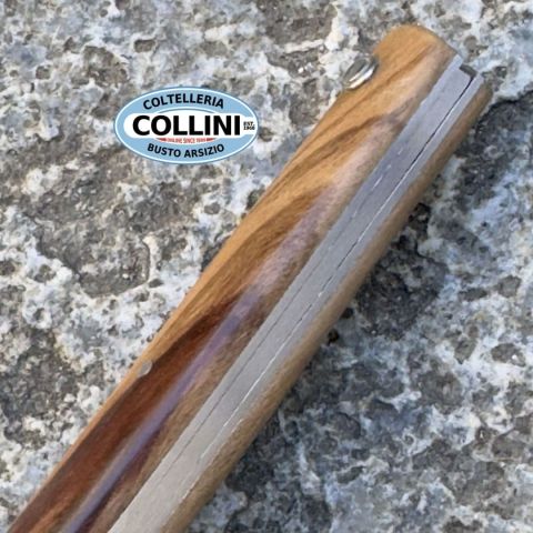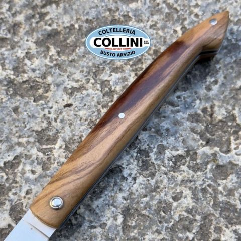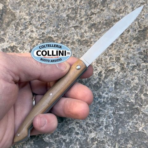 Il coltello Le Capucin incarna l'eleganza senza tempo della tradizione artigianale francese. Con radici che affondano nel XVII secolo, questo modello iconico prende il nome dalla sua caratteristica forma, ispirata al cappuccio dei frati cappuccini. Un design essenziale e funzionale, pensato originariamente per i pastori e i contadini dell'Aubrac, che oggi diventa simbolo di autenticità e stile. Ogni dettaglio racconta una storia fatta di gesti antichi e passione per la perfezione, rendendolo un compagno fedele per chi apprezza l'arte della tradizione combinata con la praticità moderna. Destinazione d'uso: Sportivo/collezioneTipo di produzione: IndustrialePaese di produzione: FranciaLama: In acciaio inox 12C27Finitura lama: satinataManicatura: Legno di UlivoLunghezza lama: 76mm.Spessore lama: 2mm.Lunghezza chiuso: 100mm.Lunghezza totale: 180mm.Peso: 40g.Chiusura: a molla semplice, slip joint