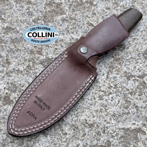 Il nome Acha deriva dal modo in cui è stato costruito: il codolo della lama attraversa ACross the HAndle ed è fissato all'estremità con un'originale ghiera in acciaio. Elegante e raffinato, ma allo stesso tempo un robusto coltello EDC a lama fissa, l’Acha monta una lama in acciaio M390 con finitura satinata, unita al manico SOLID grazie a una guardia in titanio fresata CNC 3D. Il manico SOLID è disponibile in diverse varianti ed è progettato per offrire un’ergonomia eccellente, adattandosi comodamente al palmo della mano in qualsiasi tipo di presa. Il tappo della ghiera in acciaio all'estremità del manico è stato tornito per consentire lo smontaggio dell’Acha, facilitando le operazioni di pulizia e manutenzione. Nella confezione è inclusa una chiave in acciaio che, inserita nei fori della ghiera, funge da leva per svitare il tappo.    Tipologia di utilizzo: Light Utility / Allrounder Tipo di produzione: IndustrialePaese di produzione: Maniago - ItaliaLama:
